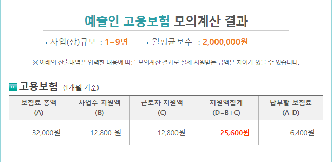 4. 두루누리 예술인 고용보험료 지원금액