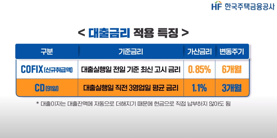 주택연금에 가입한 후 최초 월 지급금 실행일로부터 30일 이내에 가입을 철회할 수 있는데요, 이를 위해 철회 기한까지 철회 신청서를 공사에 제출하고 연금 대출 전액을 상환해야 합니다. 이런 경우에는 초기 보증료와 연 보증료를 전액 환급해 드립니다. 대출이자는 대출잔액의 가입자가 금융기관과 약정한 금리를 적용하여 납부합니다. 기준이 되는 금리를 코픽스로 선택하시면 대출금리가 6개월마다 변경이 되고, CD 금리로 선택하시면 3개월마다 변경됩니다.