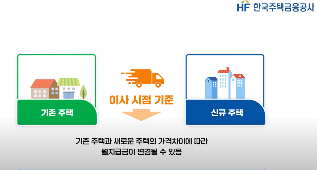 주택연금의 가입 후 이사를 가야 하는 경우에도 연금을 계속 이용할 수 있는지 궁금하실 텐데요. 공사 안내에 따라 담보주택을 새로운 주택으로 변경하실 수 있습니다. 이 경우에는 이사시점 기준 기존 주택과 새로운 주택의 가격 차이에 따라 월 지급금이 변경될 수도 있습니다.