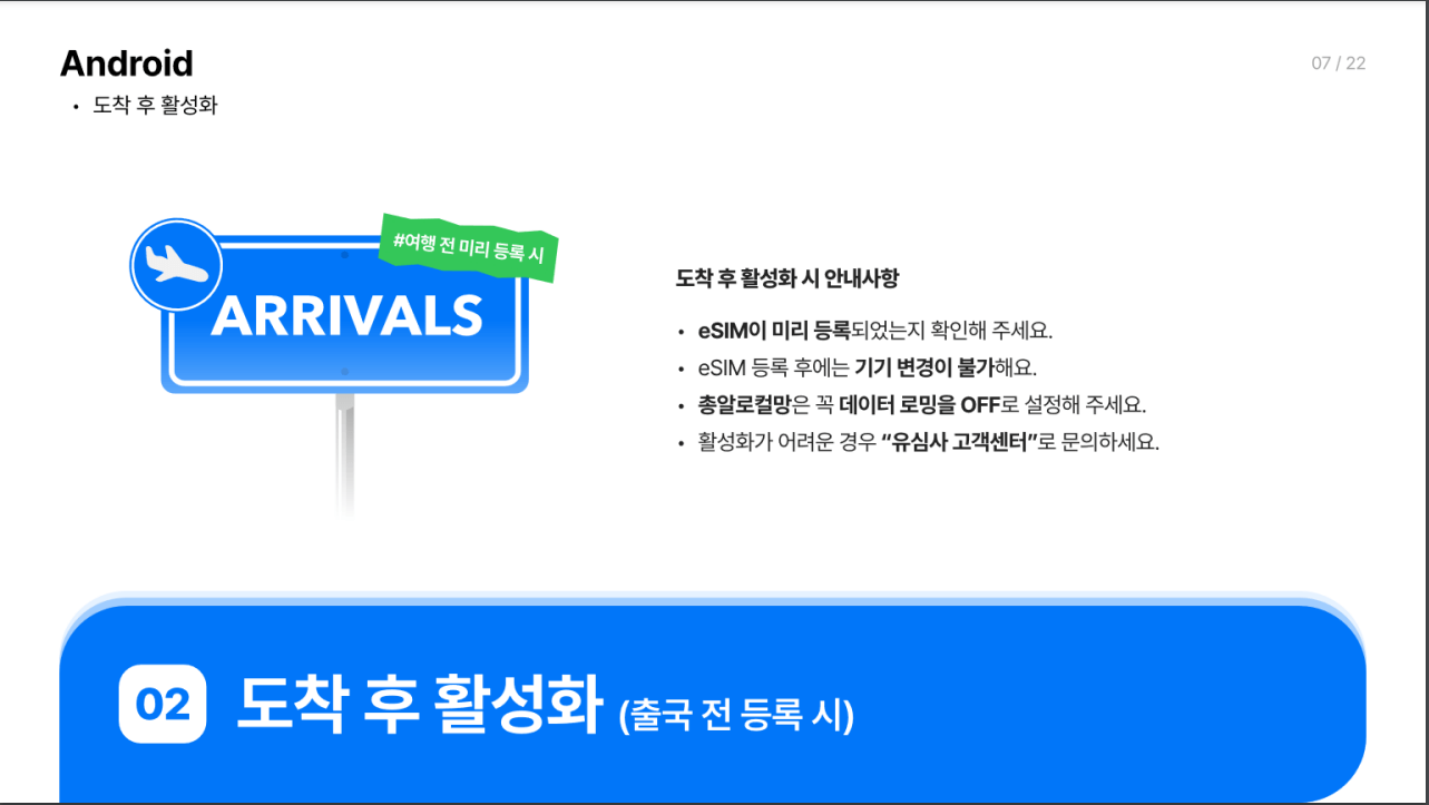 2. 도착후 활성화 방법(출국 전 등록 시)